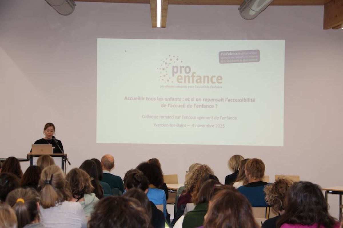 Pro Enfance a organisé le colloque romand intitulé « Accueillir tous les enfants : et si on repensait l’accessibilité de l’accueil de l’enfance ? » le 4 novembre 2025 à Yverdon-les-Bains. La journée a réuni 174 participantes et participants qui ont pu réfléchir collectivement aux perspectives pour garantir des prestations aux enfants indépendamment de leurs besoins particuliers et du statut socio-économique de leur famille. Rétrospective en images.